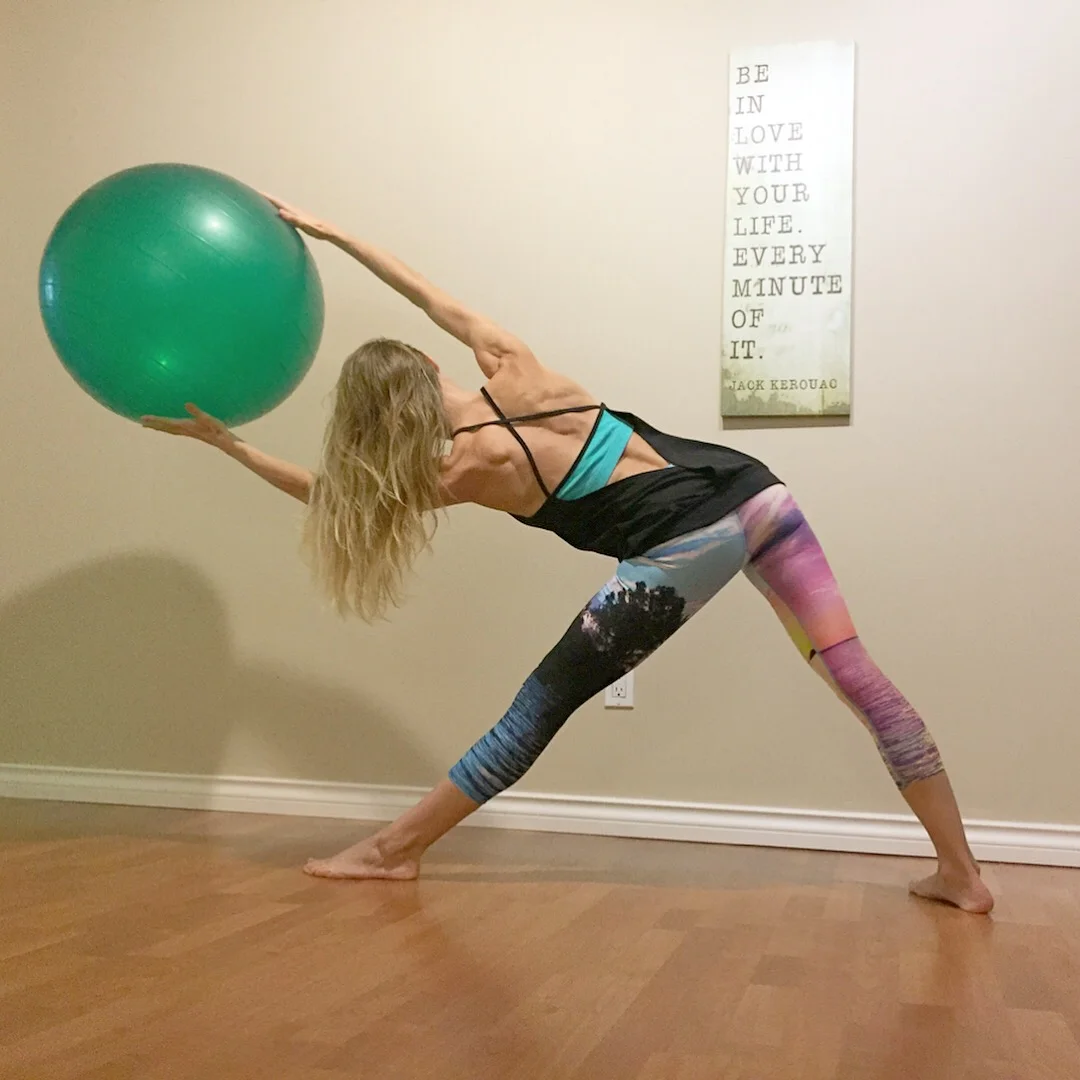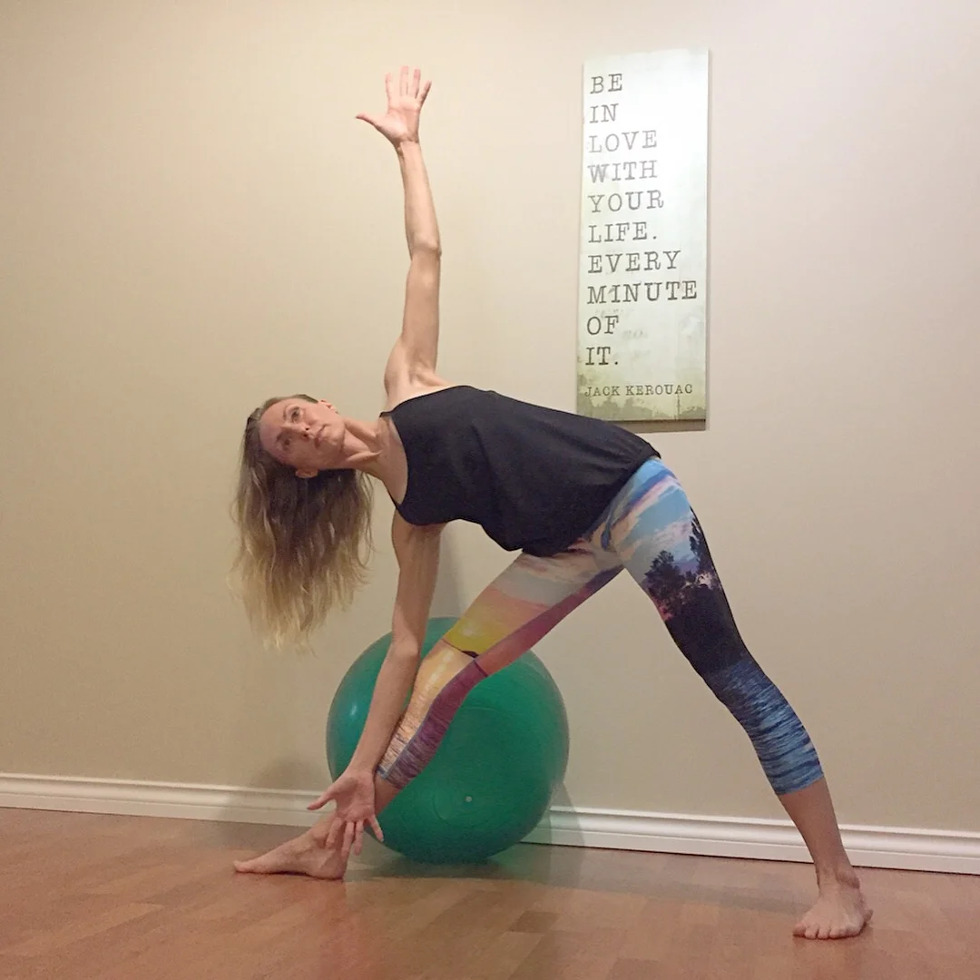 A triangle can symbolize the threefold nature of the universe: visible, invisible and the human being who contains both. Perhaps, for you, the concept of mind, body, spirt comes up. Triangles often symbolize the fire element, and you can definitely experience the heat it takes to sustain the shape. You must be present in Triangle Pose to gain the benefits without getting burned. This also symbolizes rising energy which is why you may hear me suggest not to make the floor the goal. Instead, practice lifting up and out more (this also helps share the weight between the legs and less pressure on the low back).